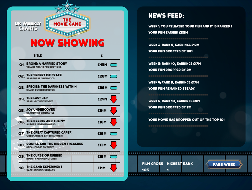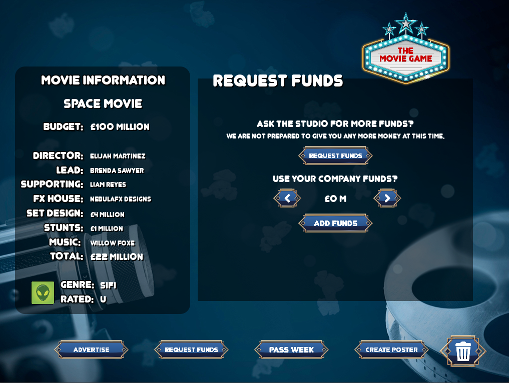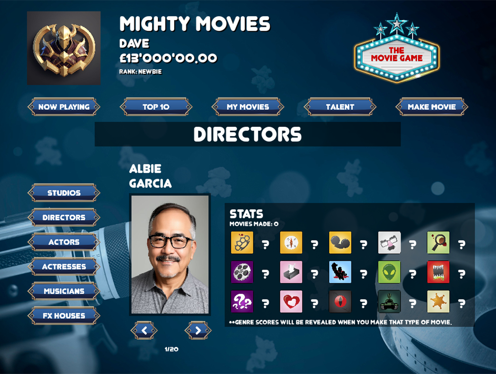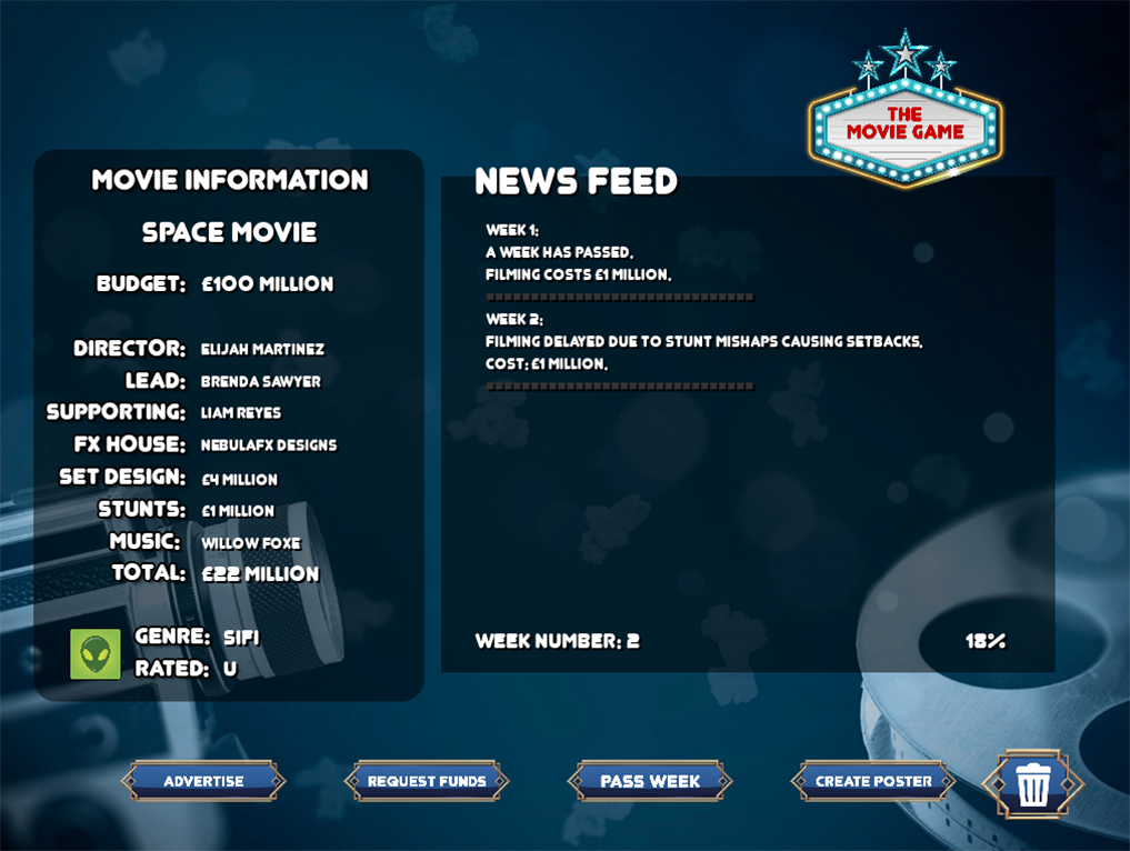 Welcome to The Movie Game, where your vision becomes the next box-office phenomenon!