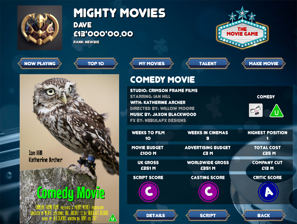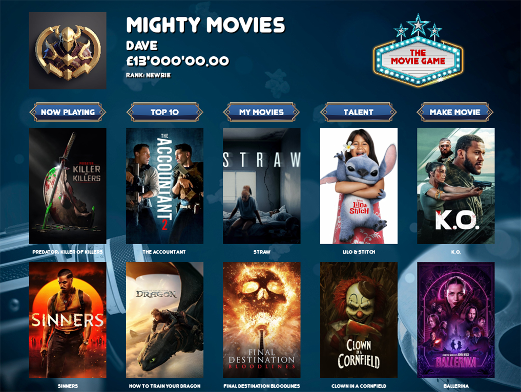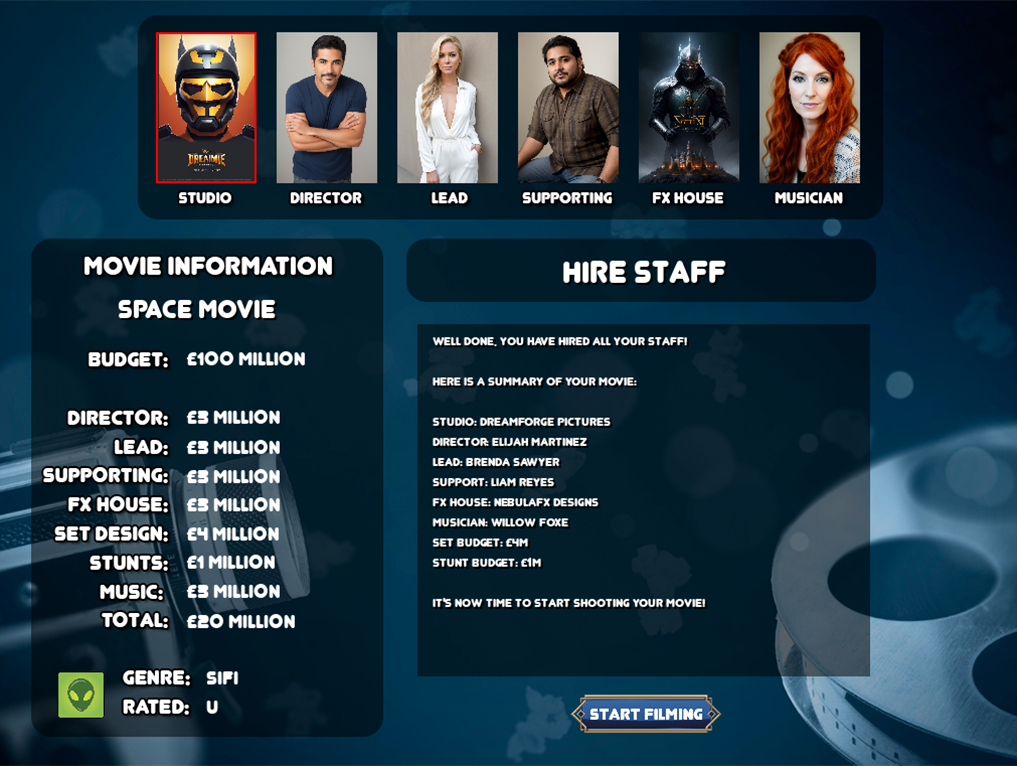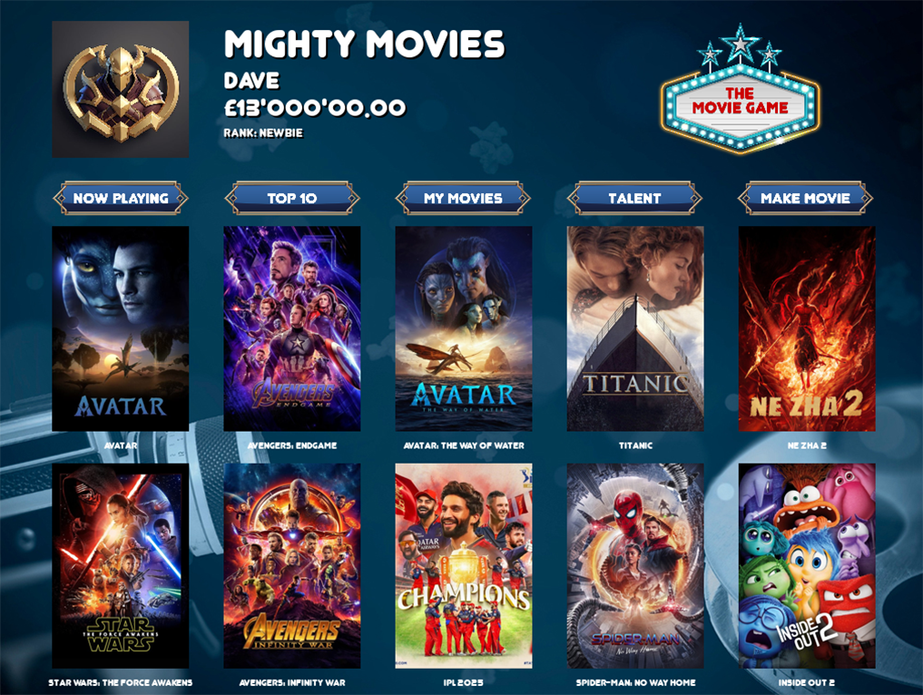 Welcome to The Movie Game, where your vision becomes the next box-office phenomenon!